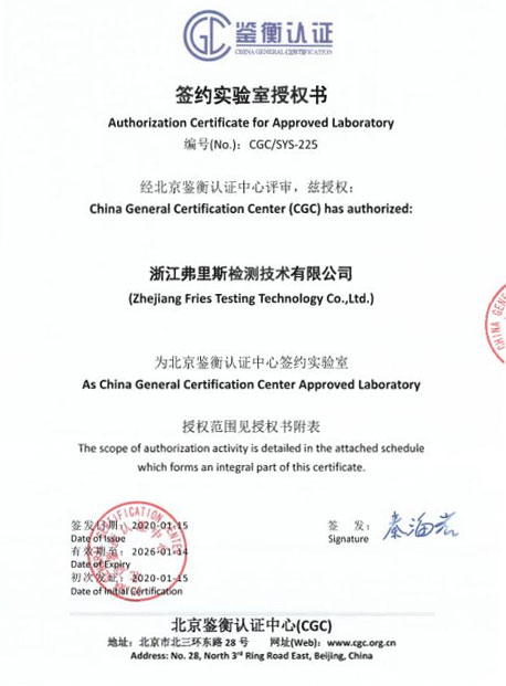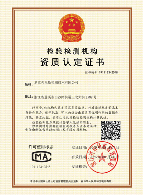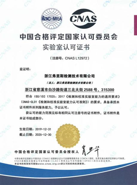 弗里斯检测 > 关于弗里斯 > 资质证书